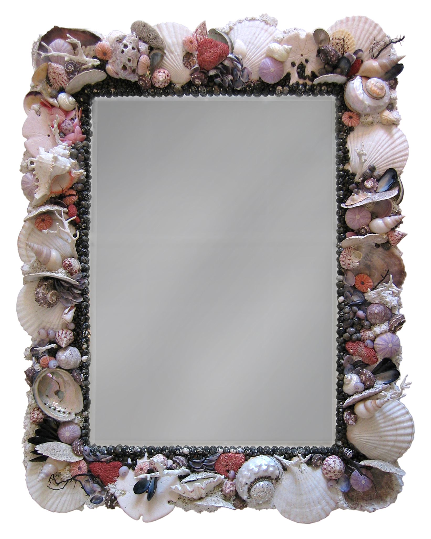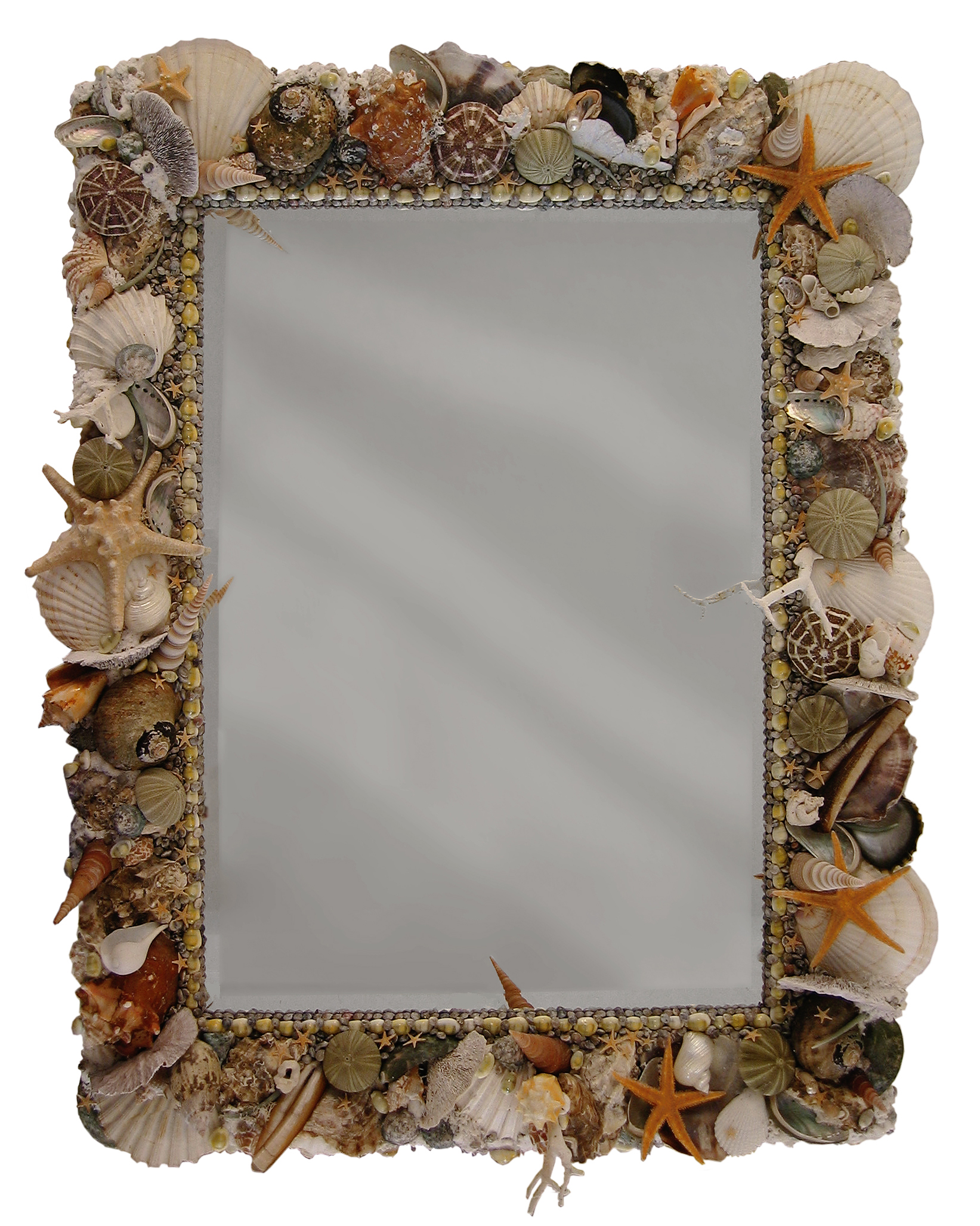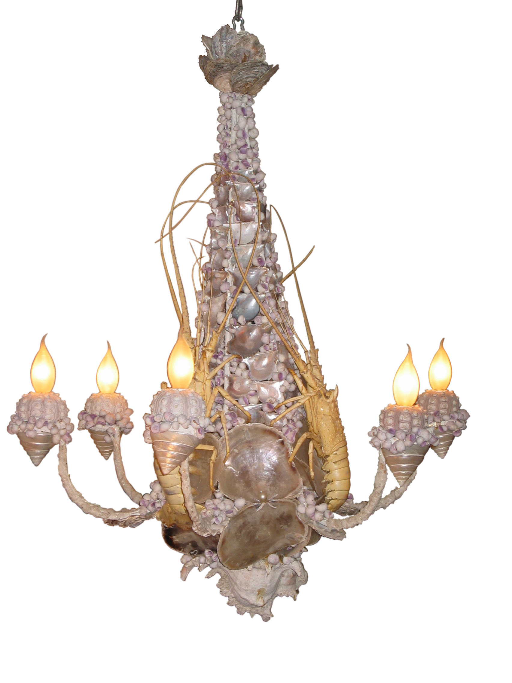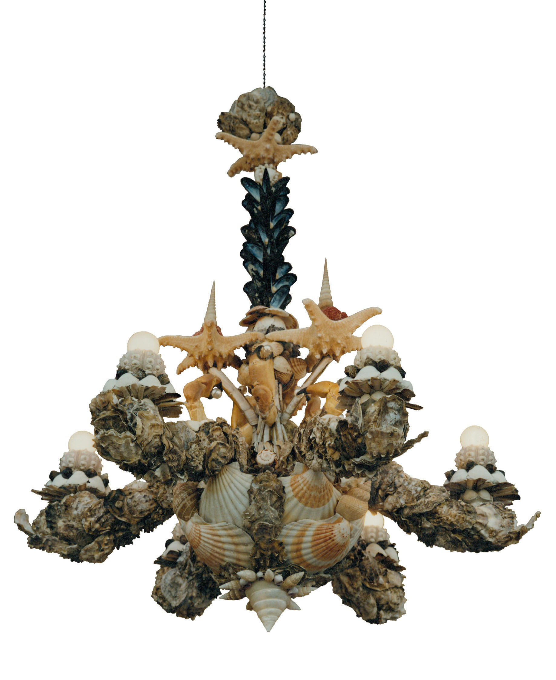 Decorative objects with shells, antlers, stones.