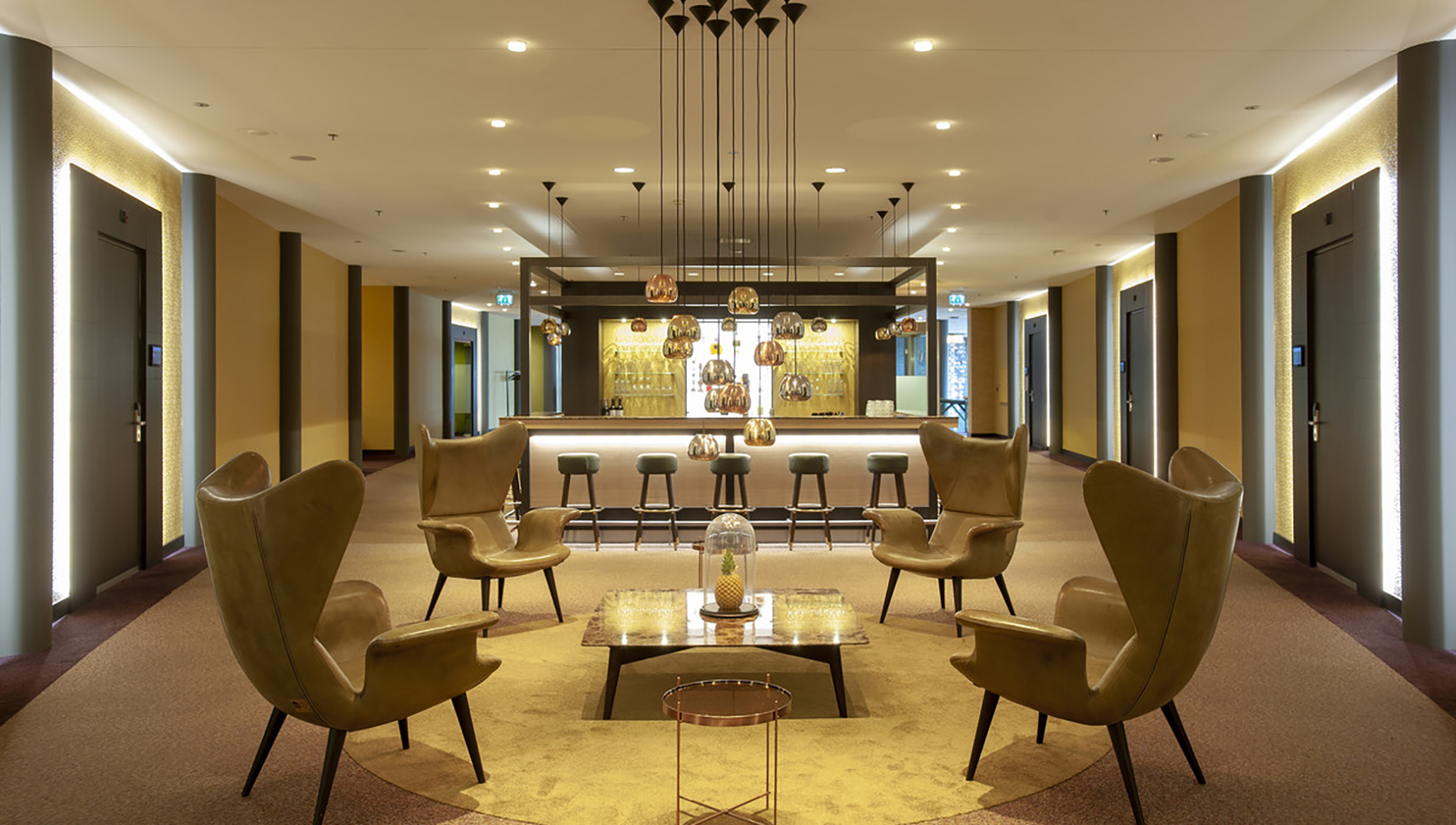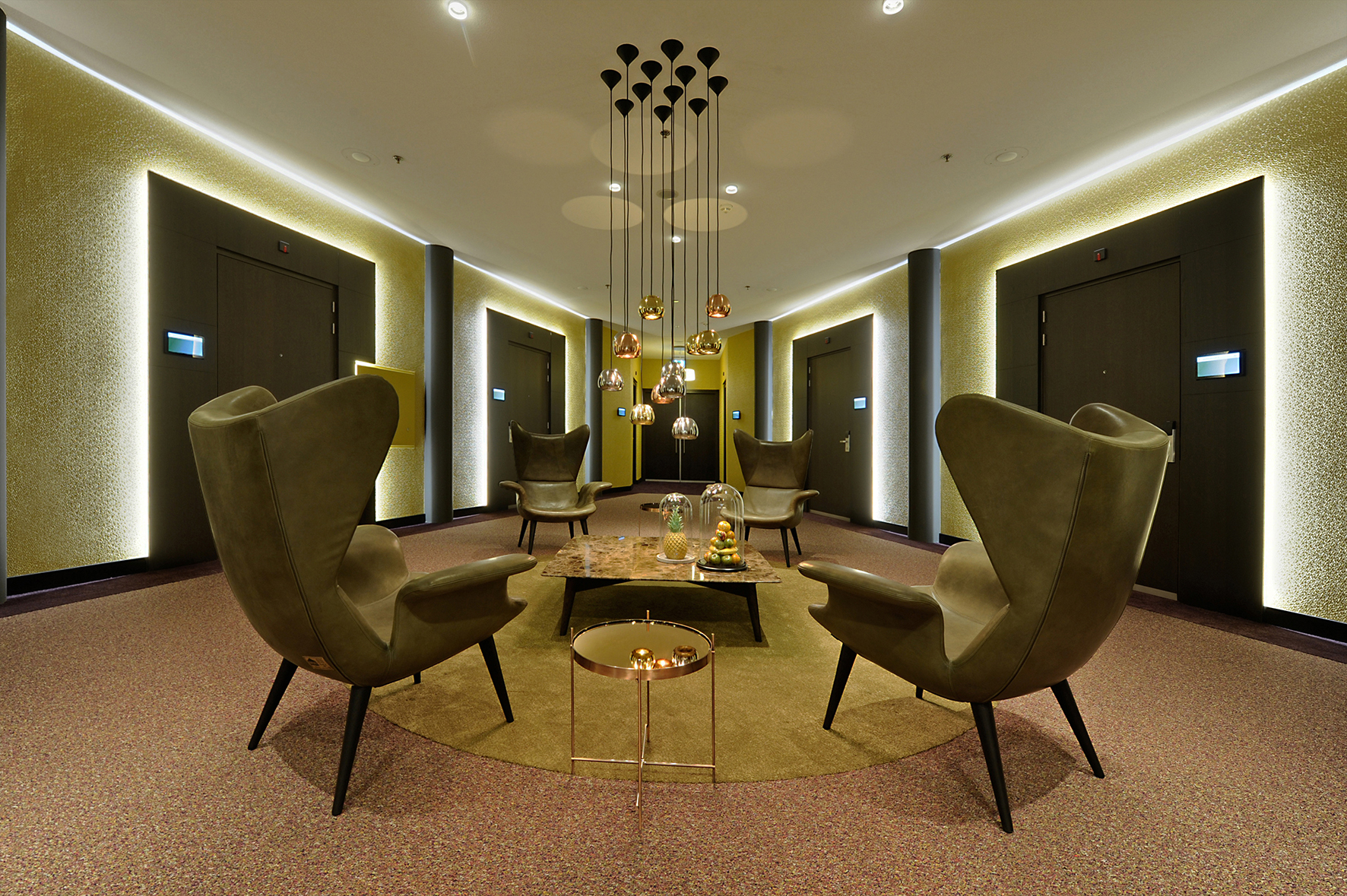 Interieurontwerp en styling voor dit hotel: foyer, receptie, kamers, restaurants en zalen.