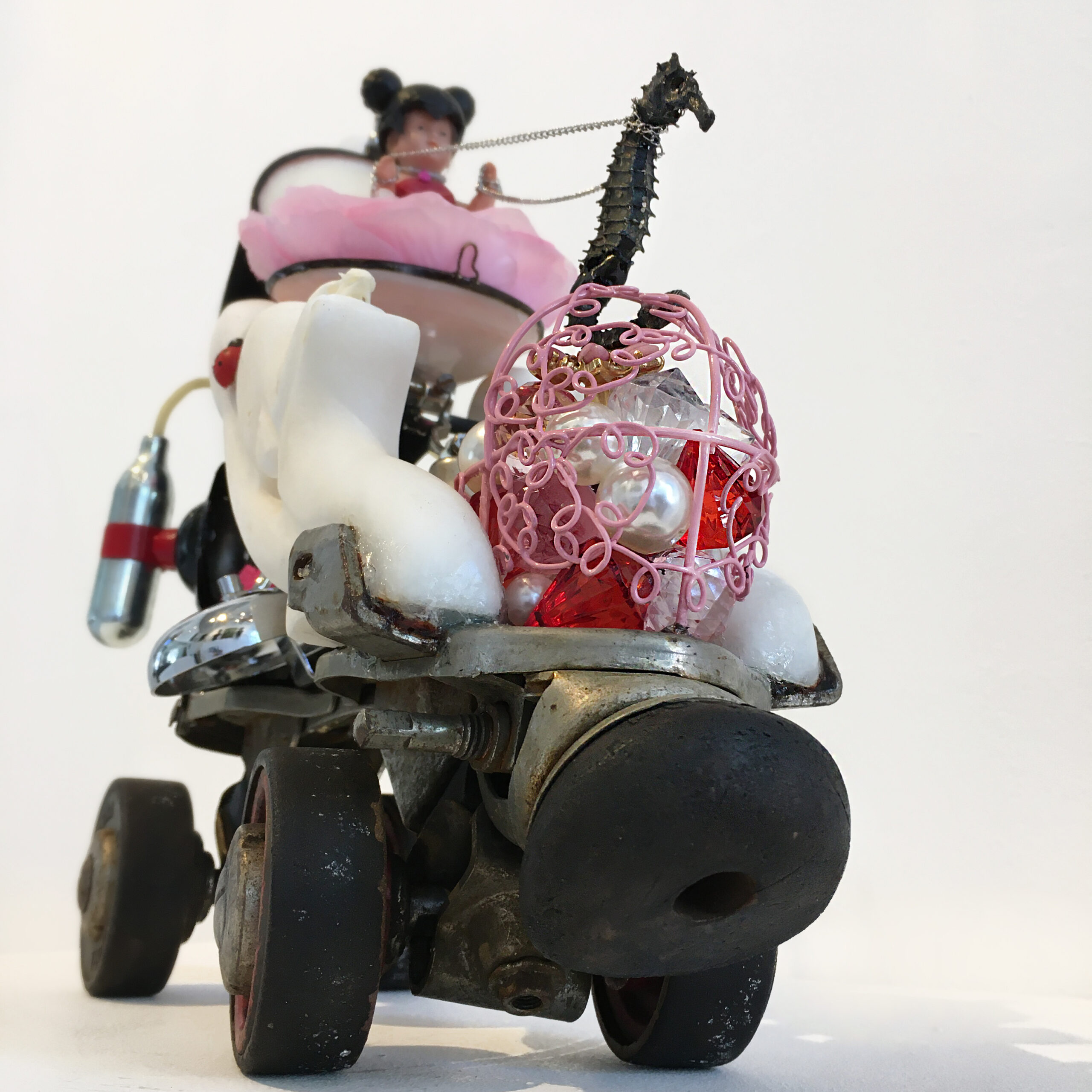 Als kunstenaarsduo werken we aan onze assemblage kunst onder de naam Mishmash, een naam die onze kunst weerspiegelt: een samengaan van tegenstrijdigheden, herinneringen, materialen en betekenissen. Ons werk ontstaat uit de fascinatie voor objecten—vooral de vergeten, versleten of ooit gekoesterde dingen die een verleden met zich meedragen. We verzamelen ze op vlooienmarkten, in de natuur, via veilingen of simpelweg op straat. Door ze te demonteren, herschikken en opnieuw tot leven te wekken, ontstaan assemblages die balanceren tussen het absurde en het kwetsbare, tussen nostalgie en vervreemding.